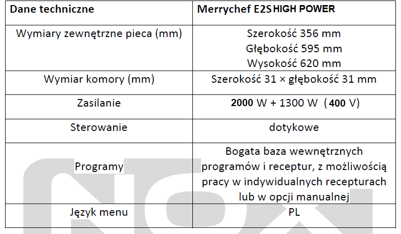 • Piecyk Merrychef to piec hybrydowy łączący w sobie gorące powietrze, wysoką temperaturę uderzenia i mikrofalę do szybkiego przygotowania posiłków