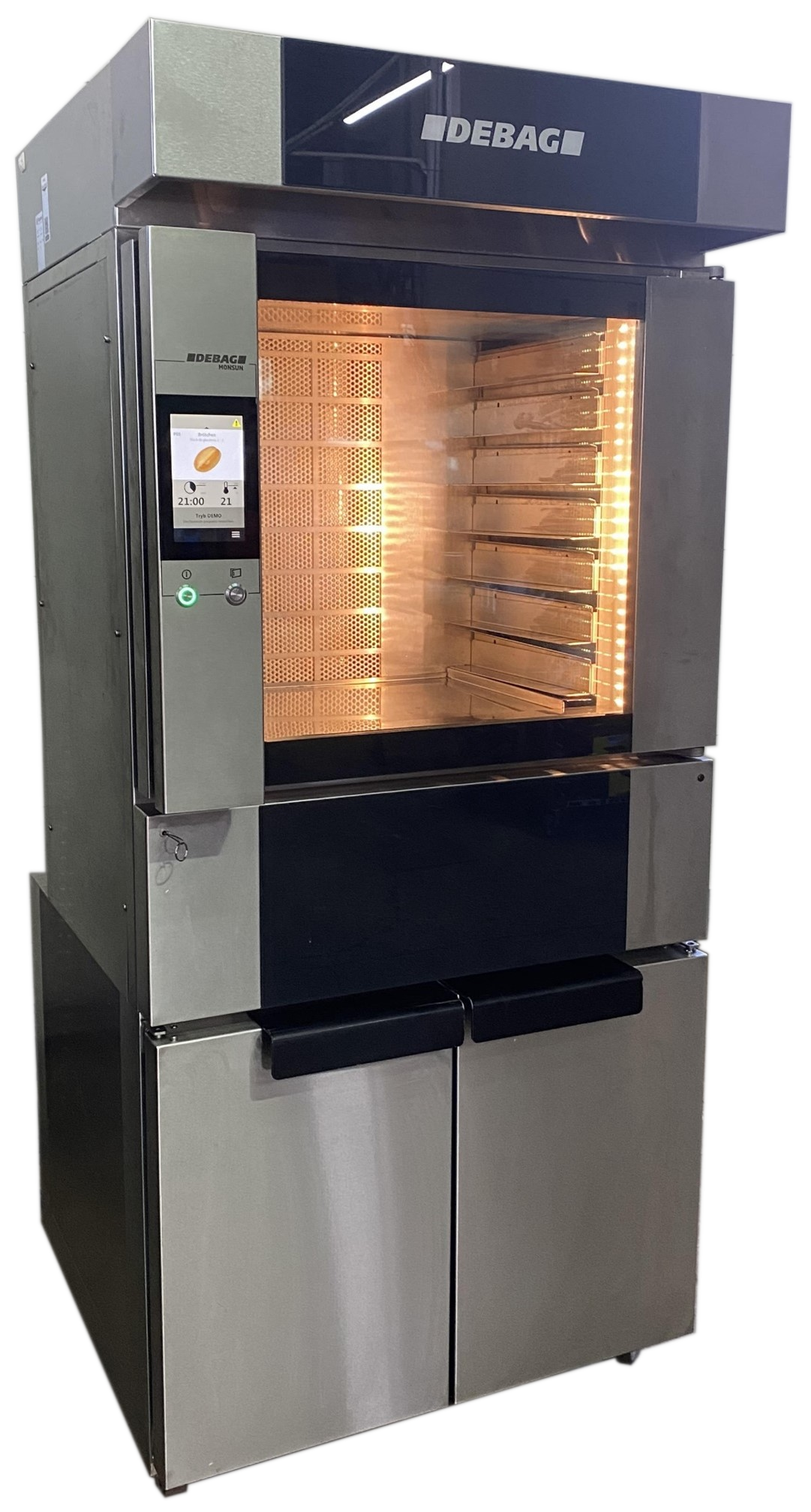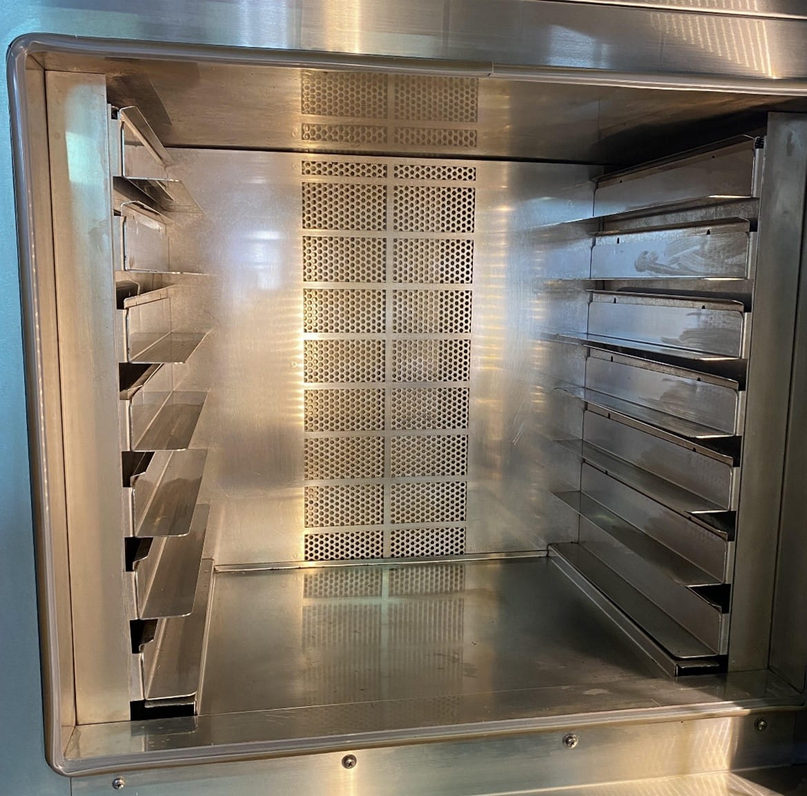 - Komora pieca na 7 blach 60 x 40cm, 8-centymetrową przestrzenią pomiędzy poziomami (opcja regulacji wysokości pomiędzy poszczególnymi półkami z możliwością wyciagnięcia poziomu),