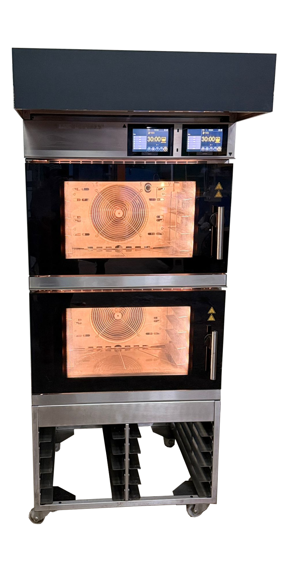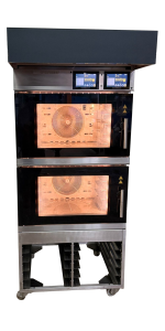 8 poziomów na blachy 60 x 40 cm , podzielone na 2 niezależne komory po 4 poziomy na blachy 60 x 40 cm dla większej różnorodności wypieku.